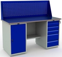 1Двухтумбовый слесарный верстак с экраном с нагрузкой до 1000 кг на столешницу.